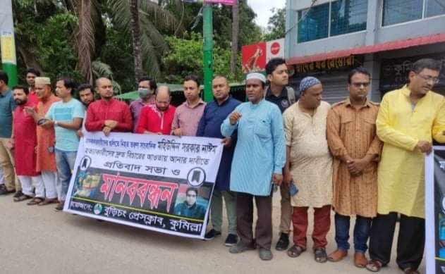 সাংবাদিককে গুলি করে হত্যার প্রতিবাদে কুমিল্লায় সাংবাদিকদের মানববন্ধন ও প্রতিবাদ সভা