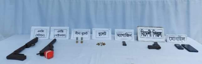 কুমিল্লার সদর দক্ষিণ উপজেলার সুয়াগাজী এলাকা থেকে একটি বিদেশী পিস্তল, একটি এলজি (পাইপগান), একটি এলজি (শটগান), ০৯ রাউন্ড পিস্তলের গুলি ও ০২ রাউন্ড শটগানের গুলিসহ অস্ত্রধারী দুই শীর্ষ সন্ত্রাসীকে আটক করেছে র্যাব-১১ এর সিপিসি-২ সদস্যরা।
