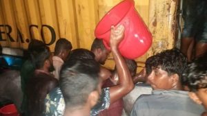 দুর্ঘটনা কবলিত কন্টিনারের সয়াবিন তেল নিয়ে স্থানীয় জনতার কাড়াকাড়ি